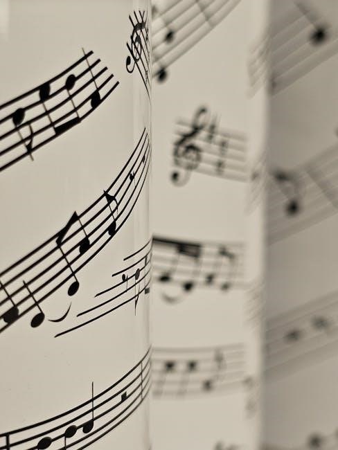 Sheet music visually represents musical compositions, utilizing symbols for pitch, rhythm, and dynamics. PDFs are ideal for digital distribution, preserving formatting and accessibility.
